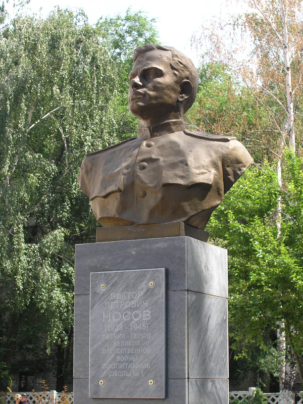 - Памятник-бюст Носову открыт в Тольятти 8 мая 1967 года у средней школы № 4 (бывшей школы № 1) по адресу: ул. Горького, д. 88. На мемориальной доске постамента текст: «Виктор Петрович НОСОВ (1923—1945), лётчик-герой Великой Отечественной войны. Воспитанник школы № 1». Постамент памятника высотой 2,5 м облицован серыми мраморными плитами. Бюст — 40×80×90 см, выколотка, алюминий, тонированный под бронзу. Скульптор: Фролов А. И. (по другим данным Н. И. Колесников[29]). Памятник представляет художественную и историческую ценность[30].