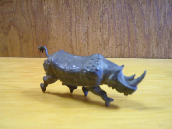 Статуэтка представляет собой скульптуру малых форм и изображает бегущего носорога. Голова животного слегка опущена относительно горизонтальной оси. Хвост поднят, а его кончик расщеплён на три части. Правые передняя и задняя ноги отставлены широко, а левые расположены ближе друг к другу. Фактура кожи подчёркнута рядом заклёпок, расположенных симметрично относительно средней части тела. На брюшке нанесена белой краской надпись «С-6685». Размеры статуэтки составляют 4,5 × 12,0 × 3,5 см.