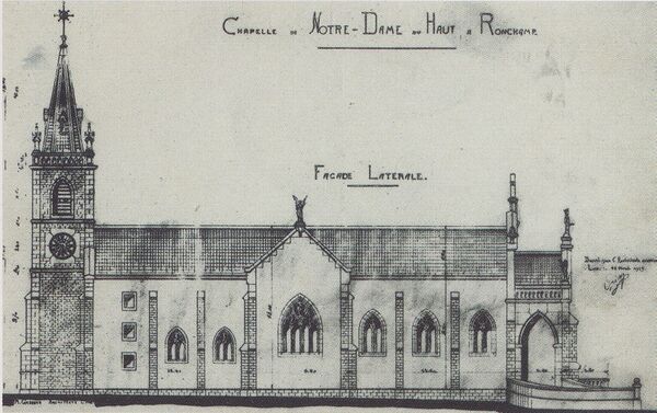 Христианская часовня на этом месте существовала с XIII века. Она была основана на месте разрушенного языческого храма. Её здание неоднократно строилось заново. Так, часовня сгорела в 1913 году от удара молнии, а в следующем здании, предшествующем постройке Корбюзье, были разрушены крыша и шатёр во время артиллерийского обстрела в 1944 году. К 1950 году эти части здания были восстановлены. Но тем не менее церковные власти решили снести старую капеллу, тем самым освободив участок для осуществления проекта Корбюзье[1].
