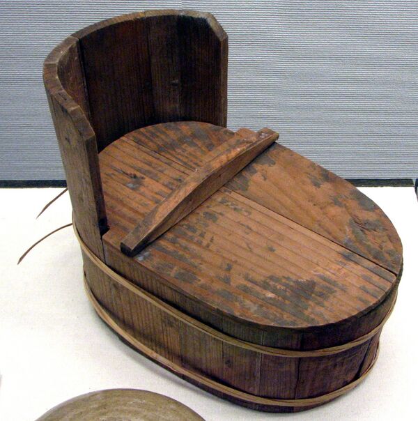 В дворцах японской аристократии по крайней мере с VII века использовали ночной горшок, устроенный как прямоугольный деревянный пенал с рукоятью, который заполняли золой или углём. До распространения отдельных туалетных комнат такие горшки использовали и днем и ночью. С XIII века для использования горшков днём стали устраивать отдельно стоящий домик. В таком туалете было два горшка — деревянный ящик или глиняный горшок для большой нужды и керамический сосуд с хвоей для малой нужды (хвоя использовалась ради аромата и благозвучия)[11][12].