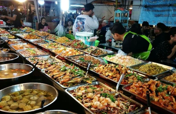 Ночной базар поделён на две зоны — вещевую и продуктовую. Вещевая зона занята бытовыми товарами для красоты и здоровья, одеждой в тайском стиле, обувью, купальниками и аксессуарами. В продуктовой зоне — свежие овощи и фрукты, мясо, рыба, морепродукты, полуфабрикаты. Большую часть территории занимают прилавки с готовой едой[5]. Там же продаются различные национальные тайские блюда, среди которых жареные личинки или саранча[6].