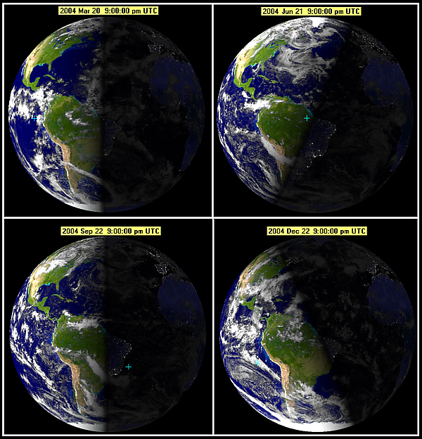 Поскольку ось вращения Земли не перпендикулярна плоскости её орбиты, продолжительность ночи изменяется в течение года. Одинаковая продолжительность дня и ночи наблюдается вблизи времени весеннего и осеннего равноденствий. Разница в продолжительности дня и ночи максимальна во время солнцестояний.