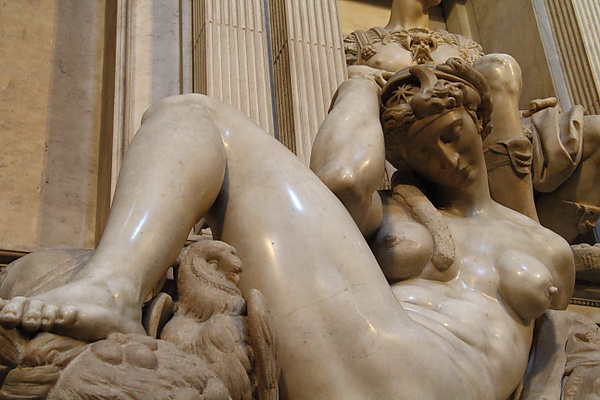 Микеланджело, возможно, использовал античные изображения Леды или спящей Ариадны. Положение тела с согнутой левой ногой и откинутой головой напоминает Леду и лебедя из утраченного рисунка Микеланджело около 1530 года.