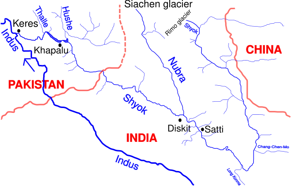 Сиачен лежит на севере долины. Сасир и Каракорумский перевал лежат на северо-западе долины и соединяют Нубру с Уйгурией. Раньше здесь шли караваны, направлявшиеся в Среднюю Азию или Туркестан.