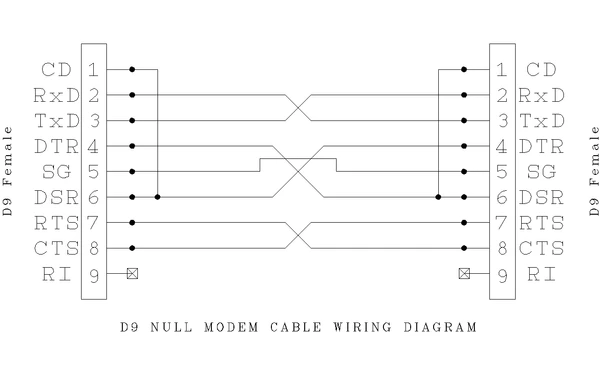 Нуль-модемный кабель — это последовательный кабель стандарта RS-232 с перекрещёнными линиями передачи и приёма данных. В некоторых вариантах кабеля также перекрещивают линии аппаратной синхронизации. Часто для соединения используют прямой последовательный кабель и специальный нуль-модемный адаптер, который перекрещивает необходимые сигналы[2][3].