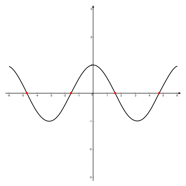 Для функции действительного переменного нулями являются значения, в которых график функции пересекает ось абсцисс.