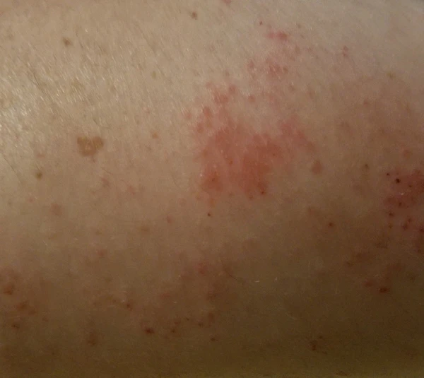 Зуд является характерным симптомом и может варьировать от умеренного до интенсивного; иногда отмечаются жжение и покалывание. Расчёсы способствуют появлению эрозий и присоединению вторичной бактериальной инфекции. Ранние, особенно везикулярные, очаги нередко колонизируются стафилококками с образованием желтоватых корок. После разрешения воспаления часто сохраняется поствоспалительная гиперпигментация[4][6].