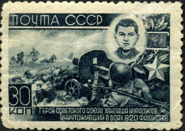 Доблестный рыцарь нашей Отчизны. Бессмертный герой Кавказа, сын солнца, орёл орлов, пулемётчик-комсомолец Ханпаша Нурадилов… Из своего пулемёта Нурадилов уничтожил 920 немцев, захватил 7 вражеских пулемётов и 12 фашистов взял в плен.