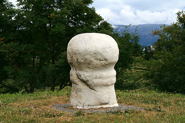 | Вид на третью по высоте вершину фюльке — Okshornet (1901 м) с вершины Окссколтен (1916 м) | Вершина горы Стетинн («наковальня богов») представляет собой плоское гранитное плато. | Тренставен на острове Санна в Трене. |