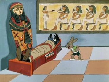 Заяц посещает музей, где Волк, спрятавшийся в рыцарских доспехах, уже поджидает его. В ходе погони за ним хищник попадает в смешные ситуации: дважды врезается в фигуру пещерного человека, которая от колебаний ударяет его мо́лотом по голове; деформирует музейную вазу до самовара, чайника и т. д., думая, что внутри неё Заяц; случайно устраивает имитацию сражения между фигурами воинов, от колебаний бросающих друг в друга снаряды и оружие; будучи завёрнутым в ковёр, попадает в саркофаг с надписью «Рамзес II».