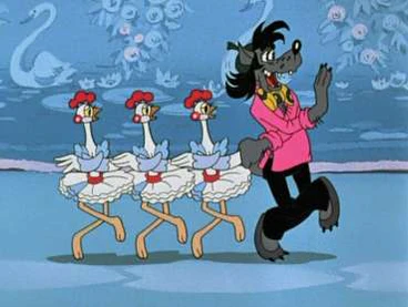Вскоре Заяц начинает концерт, на который Волк не приглашён. Волк оказывается на сцене и дирижирует хором «мальчиков-зайчиков», танцует короткий балет с Курицами. Затем он также под музыку танцует с пойманным Зайцем, но последний сбегает. За кулисами Волк показывает разные фокусы Бегемоту-охраннику.