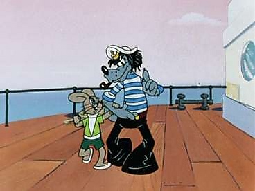 Догнав на паруснике плывущий пароход, Волк пытается поймать на нём Зайца: в его каюте; на палубе, раскачиваясь на мачтовом тросе. Однако он попадает лишь в курьёзные ситуации: убегает от прыгающего на него от качки судна чемодана; врезается в пролетавшую мимо чайку, из-за чего падает в дымовую трубу.