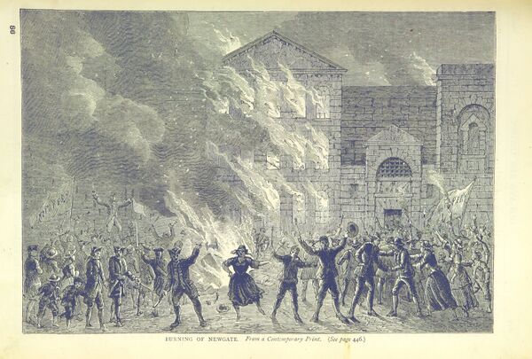Средневековое здание, заложенное ещё основателем династии Плантагенетов, к XVIII веку перестало удовлетворять требованиям безопасности. Например, взломщик Джек Шеппард, прежде чем быть вздёрнутым в 1724 году, сумел трижды бежать из Ньюгейта. В 1770-е годы старинная тюрьма была снесена и на её месте Джордж Данс выстроил новую, где «приличные» заключённые и «сброд» были разведены по разным корпусам. Через два года после завершения строительства разразился бунт лорда Гордона. Тюрьму подожгли, 300 узников вырвались на свободу, остальные задохнулись в дыму.