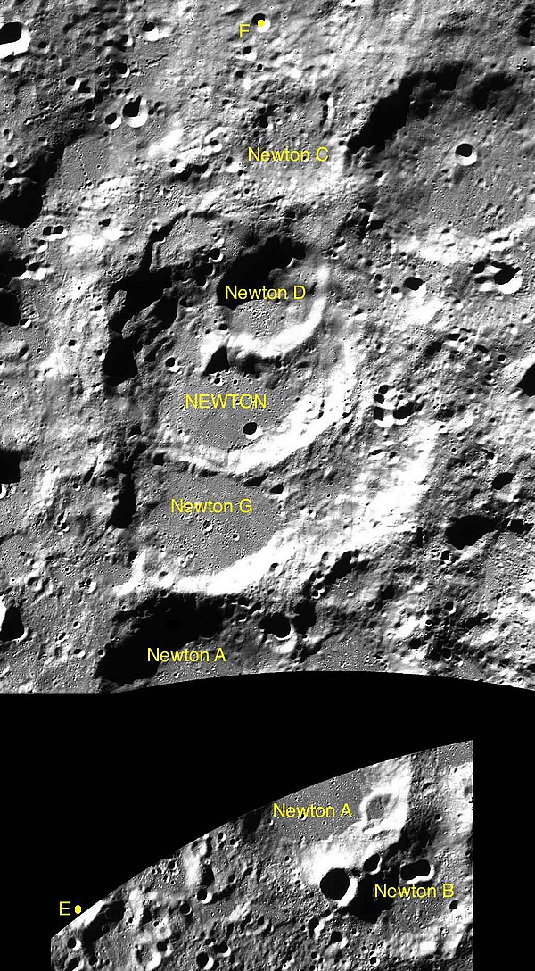 Кратер Ньютон считается одним из самых глубоких кратеров на видимой стороне Луны.