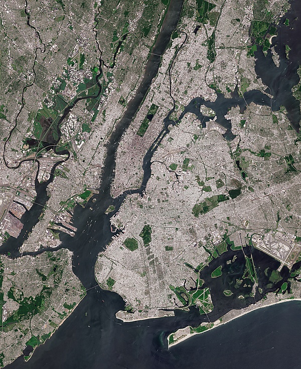 Расположенный на отдельных островах и полуостровах, город располагает большим количеством мостов и тоннелей. Смежные части города между собой, а также с примыкающими городами Джерси-Сити, Ньюарк и др. одновременно соединены, как правило, несколькими мостами и тоннелями.