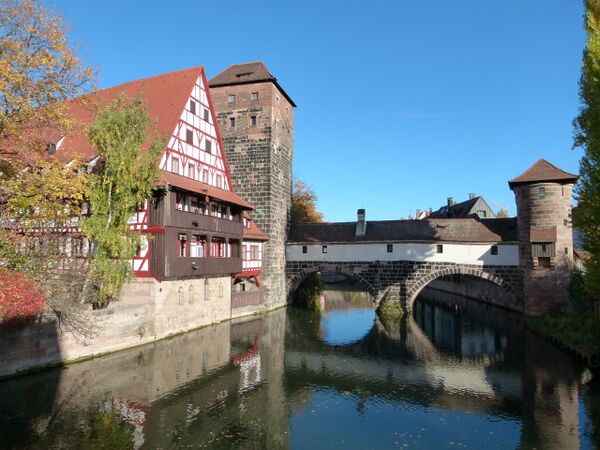 Через Пегниц перекинуто несколько старинных мостиков, включая Мост мясников (1596-98) и пешеходный цепной мост 1824 года.