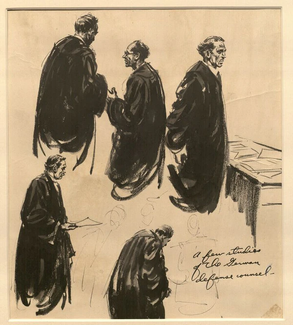 К 27 октября одиннадцать обвиняемых нашли себе защитников: во многом благодаря помощи Франка, который ранее состоял президентом Академии немецкого права, и советам от своих семейных юристов. Трое обвиняемых обратились к одному и тому же адвокату, а Рудольф Дикс так долго принимал решение стать адвокатом Шахта, что тот успел нанять международного юриста, профессора Герберта Крауса. Папен, также первоначально выбравший Дикса, воспользовался услугами Эгона Кубушока. Геринг выбрал в качестве своего адвоката судью Высшего суда Киля Отто Штамера, который посчитал своей обязанностью защищать бывшего председателя рейхстага. Письмо Кейтеля своему защитнику так долго проходило через тюремную цензуру, ответственность за которую нёс всего один человек, что у генерала возникли подозрения в ограничении его выбора. Трибунал один раз запретил выбор адвоката: Розенбергу было запрещено воспользоваться услугами подсудимого Франка. Трибунал сам назначил только адвокатов для организаций и отсутствовавшего Бормана[110][93].