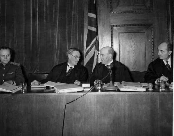 | Судьи | И. Т. Никитченко, А. Ф. Волчков, Фрэнсис Биддл, Джон Паркер, Норман Биркетт, Анри Доннедьё де Вабр и Робер Фалько |