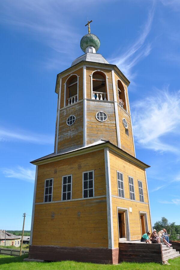 В сентябре 1732 года начали восстанавливать храм Николая Чудотворца, который венчает девятиметровый купол. На месте обветшалой колокольни после 1834 года церковным мастером В.Заборщиковым из Архангельска была поставлена копия сгоревшей колокольни. Из десяти колоколов сохранился самый большой, весом в 50 пудов. Он был отлит в 1764 году на деньги прихожан. Икона «Страшный суд» из этой церкви (15 век, новгородская школа), с 1960 года находится в собрании Эрмитажа, Инв. ЭРИ-477.