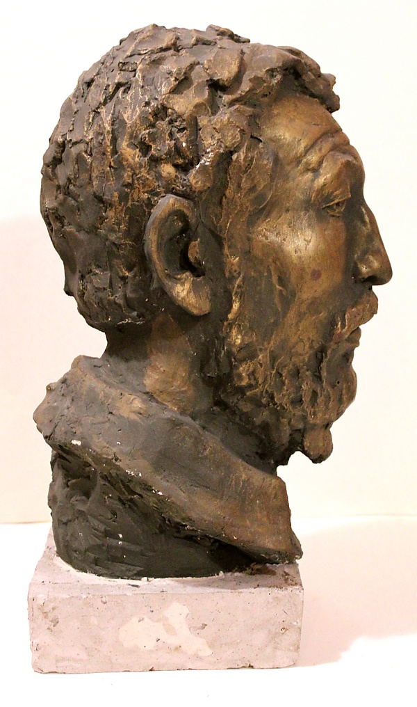 Бюст представляет собой скульптурную голову пожилого мужчины, установленную на невысокой квадратной подставке серого цвета. Лицо имеет удлинённую форму. Нос длинный, с небольшой горбинкой. Глаза имеют миндалевидную форму, а брови расположены высоко. На лбу видны две глубокие поперечные морщины. Усы и небольшая борода выполнены полосой, проходящей от уха по всему подбородку, с образованием клина по центру. Большие залысины располагаются к вискам. В области шеи изображён раскрытый воротник рубашки.