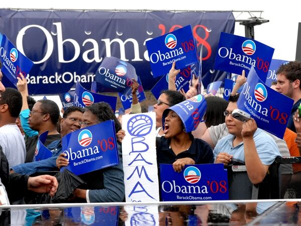 Обама объявил о желании баллотироваться в президенты в феврале 2007 года и в 2008 году на президентских праймериз на Демократическом национальном съезде был официально выдвинут от Демократической партии кандидатом в президенты вместе с кандидатом на пост вице-президента — сенатором от штата Делавэр Джозефом Байденом. На президентских выборах 2008 года Обама опередил кандидата от правившей Республиканской партии Джона Маккейна, набрав 52,9 % голосов избирателей и 365 голосов в коллегии выборщиков против 45,7 % и 173 у Маккейна.