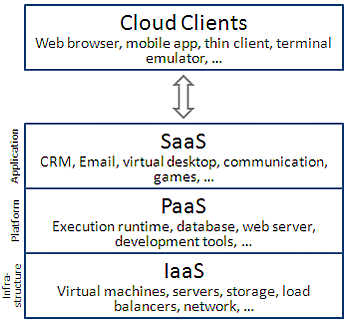 - Программное обеспечение как услуга (SaaS, англ. Software as a Service)