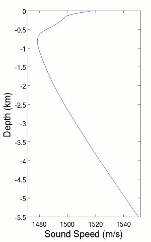 Акустический способ является первым по важности. Звук распространяется в воде гораздо быстрее, чем в воздухе (около 1500 м/с) и на расстояния много бо́льшие, чем любые другие возмущения. В среднем дальность обнаружения акустическим способом на два порядка превосходит следующий за ним магнитометрический способ. Акустика позволяет обнаруживать подводные лодки на всех глубинах[1], не зависит от времени суток и мало зависит от погодных условий и сезона. Однако дистанция, точность и сама надежность обнаружения сильно (в десятки раз) меняются в зависимости от гидрологических условий моря; например, наличие подводного звукового канала (на диаграмме) может резко повысить дальность обнаружения, наоборот, слой скачка служит барьером и может сделать лодку акустически «невидимой».