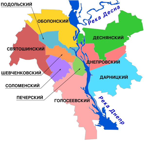 Основные магистрали Оболони — проспекты Оболонский и Владимира Ивасюка.