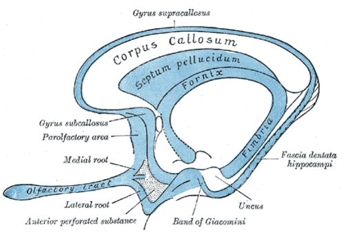 - Медиальная обонятельная извилина (лат. gyrus olfactorius medialis);