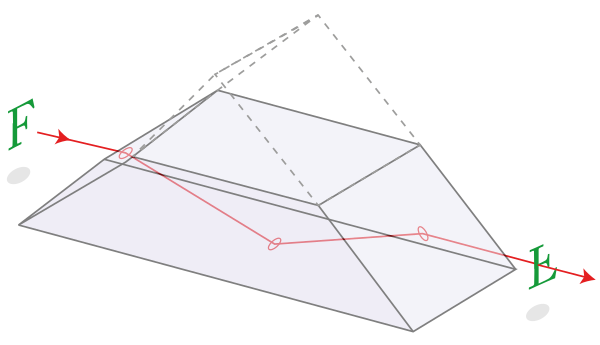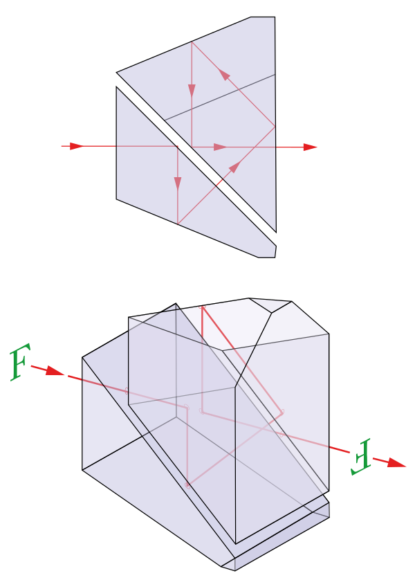 В главном сечении призма представляет собой равнобедренную трапецию, боковые стороны которой наклонены к основанию под углом 45°. Свет, вошедший в одну из наклонных граней, преломляется и испытывает полное внутреннее отражение от длинного основания. Отразившись, он выходит через вторую наклонную грань в том же направлении, в котором шёл до попадания в призму.
