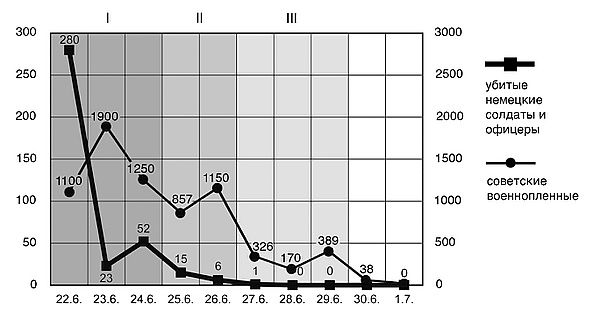 Суммарные потери немцев (ранеными, убитыми, пропавшими без вести) в Брестской крепости составили 1197 человек, из них 87 офицеров вермахта на Восточном фронте за первую неделю войны[19]. По другим данным, эти потери были несколько выше: 482 убитых (в том числе 32 офицера) и свыше 1000 раненых.[20]