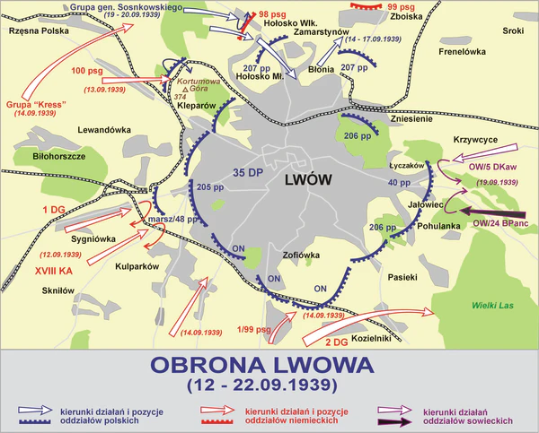 В это же время немецкая 2-я танковая дивизия разбила заслоняющую Львов со стороны Красного, группу «Жолкев» полковника Стефана Ивановского.