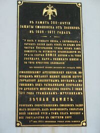 - В 1911 году на стене Успенского кафедрального собора в Смоленске была открыта памятная доска 300-летию защиты Смоленска от поляков. Доска посвящена смоленскому архиепископу Сергию, воеводе Михаилу Шеину, князю Петру Горчакову, а также «доблестным воинам, погибшим под развалинами взорванного древнего Мономахового собора 3 июня 1611 года, гражданам — мученикам».