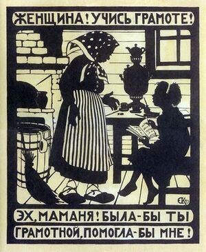 Серьёзной проблемой была неграмотность значительной части населения, особенно крестьянства. Советское руководство считало достижение всеобщей грамотности одной из приоритетных задач. Как говорил Владимир Ленин — «нам нужно громадное повышение культуры. Надо добиться, чтобы уменье читать и писать служило к повышению культуры, чтобы крестьянин получил возможность применять это уменье читать и писать к улучшению своего хозяйства и своего государства»[7].