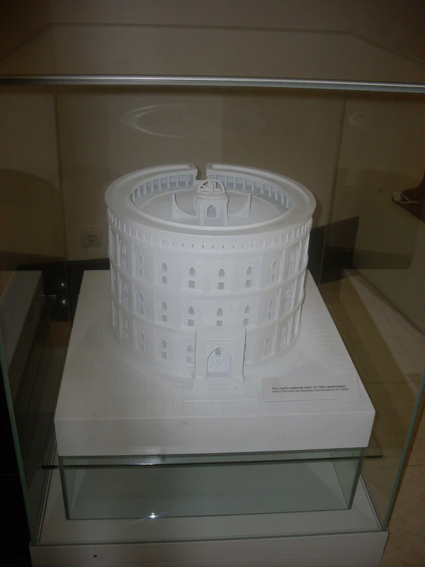 Согласно сделанной реконструкции, обсерватория имела вид трёхэтажной цилиндрической постройки высотой 30,4 м и диаметром 46,40 м, и вмещала ориентированный с севера на юг[2] грандиозный угломер — секстант (или квадрант[3]) радиусом 40,21 м, на котором производились измерения высоты небесных светил над горизонтом при прохождении их через небесный меридиан. Прибор открыт раскопками и хорошо сохранился в подземной части. Предполагается, что его дуга составляла шестую часть окружности с рабочей частью от 20° до 80°.