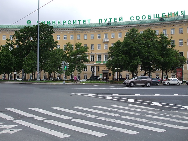 На Обуховскую площадь выходит один из корпусов Петербургского государственного университета путей сообщения.