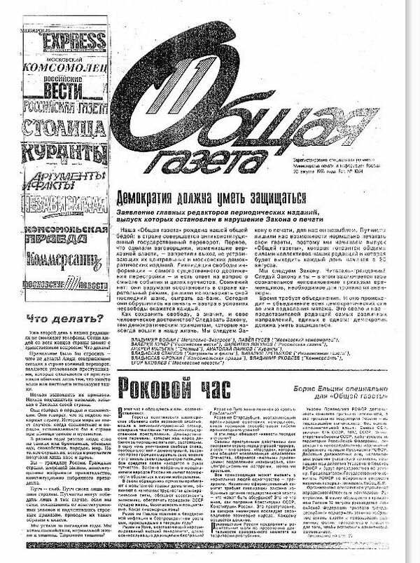 Издание газеты с этим названием первоначально было приурочено к попыткам Государственного комитета по чрезвычайному положению (ГКЧП) закрыть свободные газеты, и было нерегулярным: во время событий 18—21 августа 1991 года, журналисты нескольких московских газет и журналов, не имея возможности печататься легально, но объявившие действия членов ГКЧП антиконституционными, объединились с целью издания газеты, остававшейся верной конституционному строю СССР[1].