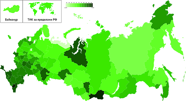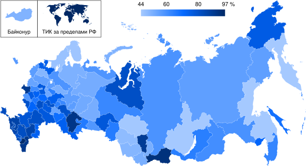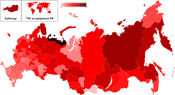 ВЦИОМ представил суммарные данные по четырём дням голосования. Опрос проводился на 800 избирательных участках в 25 субъектах РФ[50][51] .