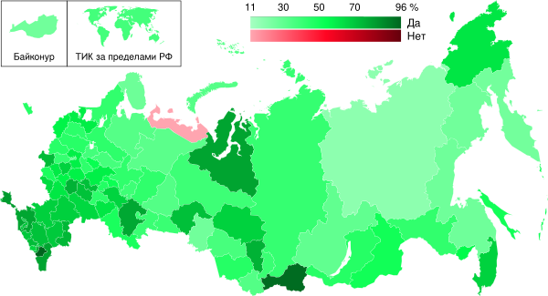 | Регион | Явка (в %) | «Да» | «Нет» | Недействительные бюллетени | |||