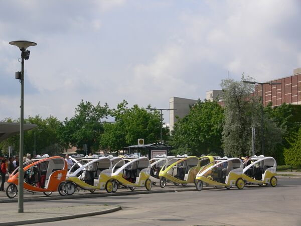 Кроме того, в Берлине можно встретить и велорикши Bike Taxi, Velotaxi или Berlin Rikscha Tours, которые однако ни численностью (порядка 120)[69], ни скоростью передвижения, ни их более высокой стоимостью проезда не составляют конкуренции традиционному такси и являются, скорее, туристическим аттракционом.