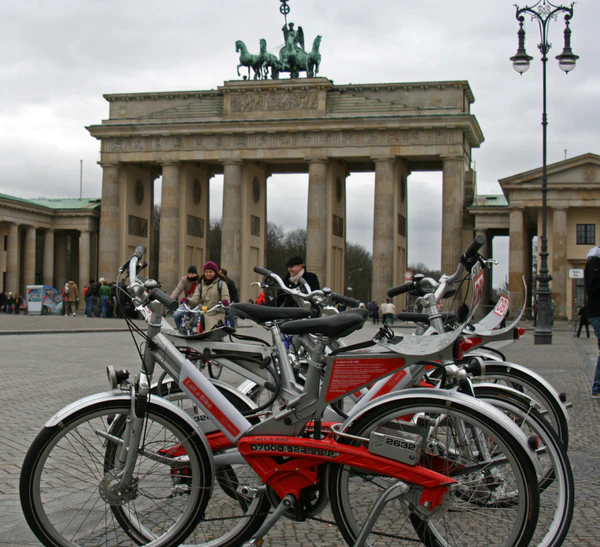 Первая система велошеринга — Call-a-Bike — в немецкой столице стартовала в 2002 году[70]. К лету 2018 года к велопрокату в Берлине семью различными частными компаниями (Nextbike, Mobike и др.) предлагалось в общей сложности 14 тыс. велосипедов[71], то есть менее 4 на 1 000 жителей (для сравнения: в личном пользовании находится 721 велосипед на 1 000 берлинцев)[72]. В большинстве действующих систем арендованные велосипеды можно оставлять на любой улице в центре города (а не только на одной из станций). Стоимость проката (30 минут): 0,50 — 1,50 €[73]. За исключением автобанов и улиц с предписанной минимальной скоростью велосипедисты могут передвигаться по всем немецким дорогам. К тому же только в одном Берлине для них дополнительно оборудовано более 1000 км велосипедных дорожек или специально выделенных транспортных полос[74]. Пользование услугами велопроката возможно при помощи мобильных приложений, карточек клиента или телефона.