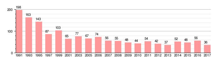 Хотя в сравнении с другими землями в Берлине в ДТП в пересчете на всё население погибает наименьшее количество людей, а общая статистика смертельных исходов за последние десятилетия имеет заметную тенденцию к снижению, стратегическая цель уменьшить с 2010 по 2020 год число погибших на дорогах на 40 % до сих пор не достигнута[134]. Кроме того официально признается, что выглядит невыполнимой поставленная ранее задача по снижению в этот период числа тяжело пострадавших в ДТП на 30 %[135].
