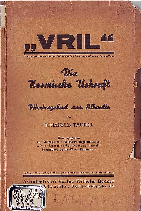 В 1871 году вышел научно-фантастический роман «Грядущая раса»[14] писателя-розенкрейцера и оккультиста Э. Бульвера-Литтона, где рассказывалось о сверхцивилизации, живущей под поверхностью Земли, овладевшей силой «Врил». Врил — описывалось как магическая энергия, способная двигать материю, энергетически питать машины и роботов, лечить и мгновенно уничтожать тысячи и миллионы существ.