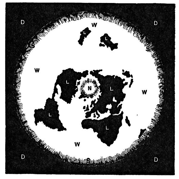 - Земля считается плоским диском 40 000 километров в диаметре, с центром в районе Северного полюса.