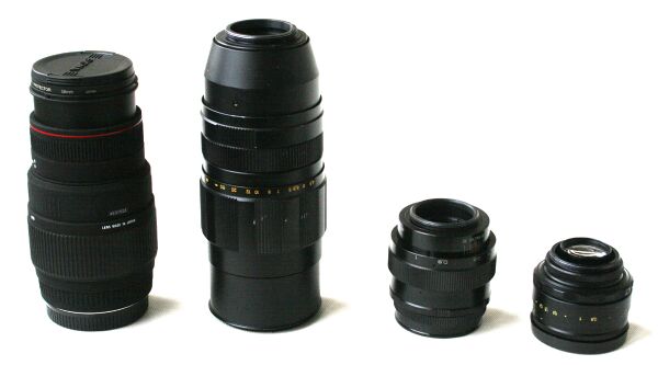 - Объектив фотоувеличителя — оправа не имеет механизма наводки на резкость, но имеет диафрагму.