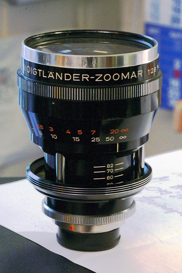 В фотографии возможность изменения фокусного расстояния объектива долго считалась нецелесообразной, поскольку в отличие от телевидения и кино не играет роли выразительного средства. Точное кадрирование, недоступное в момент съёмки обычными объективами, выполнялось в процессе фотопечати. Кроме того, реальная возможность использования зумов появилась только с распространением в начале 1960-х годов однообъективных зеркальных фотоаппаратов, вытеснивших непригодные для съёмки трансфокаторами дальномерные и двухобъективные зеркальные[13]. Дополнительным препятствием стали размеры кадра, который даже в малоформатной фотографии значительно больше, чем в кино и на телевидении. Прямая зависимость габаритов и массы объектива от формата выводила эти параметры за разумные пределы для доступных на тот момент конструкций трансфокаторов. Попытки создания фотообъективов со ступенчатым изменением фокусного расстояния были также признаны бесперспективными, поскольку никак не упрощали конструкцию[14].