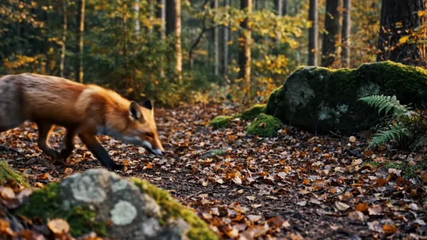 Лисица, передвигающаяся спокойно, идёт по прямой линии, оставляя за собой чёткую цепь следов. Напуганное животное может бежать очень быстро, галопом или буквально распластавшись над землёй, полностью вытянув хвост.