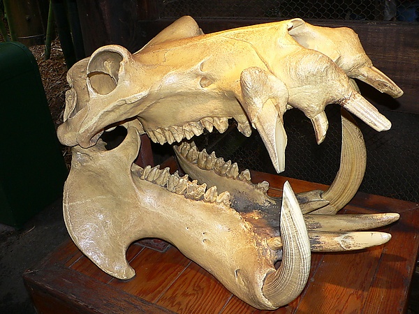 В исключительных случаях встречаются самцы с невероятно длинными, гипертрофированными клыками длиной свыше 1 м[30], упоминается даже длина в 122 см[31]. Обычно такой длины клыки достигают, если зверь утрачивает клык противоположной челюсти; тогда клык не стачивается и постепенно разрастается до огромных размеров, загибаясь всё сильнее назад. Описаны гиппопотамы, у которых аномально длинные клыки пронзали губу и виднелись снаружи даже при закрытой пасти. Это может сильно затруднять питание животного[8].