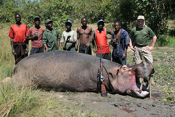 Туземное население Африки во все времена охотилось на бегемотов, но из-за примитивности вооружения добыча бегемотов африканцами не была массовой и не подрывала популяции этих животных. Ко времени начала активной колонизации Африки европейцами (середина XIX века) практически все водоёмы континента к югу от Сахары буквально кишели бегемотами. Появление хорошо вооружённых белых охотников привело к быстрому сокращению численности бегемотов из-за бесконтрольного хищнического отстрела. Ситуацию резко усугубило распространение огнестрельного оружия и среди туземцев[25].