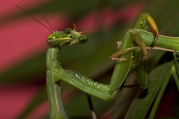 В отличие от самцов, которые питаются достаточно мелкими насекомыми, более крупные и тяжёлые самки могут нападать на насекомых такого же, а иногда и большего размера, чем они сами. Кроме того, богомолы могут поедать собственных детенышей, если те не успели укрыться после вылупления из яйца.